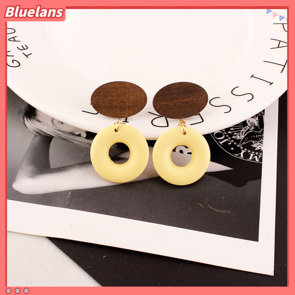 Detail [BLS] Anting Kayu retro Yang Modis fashion Wanita all-match oval ring log earrings Kepribadian Anting Panjang