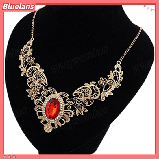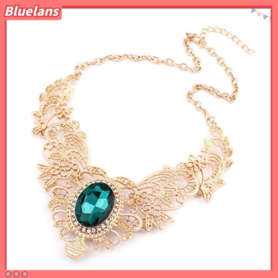 Detail [BLS] Baru Wanita Pesta Mewah Berongga Keluar Bunga Oval Berlian Imitasi Statement Bib Kalung