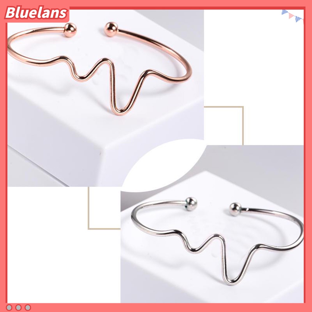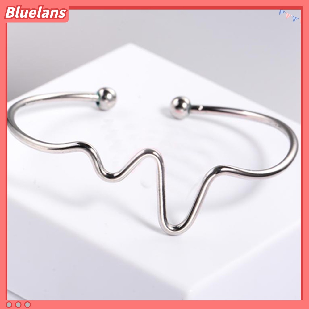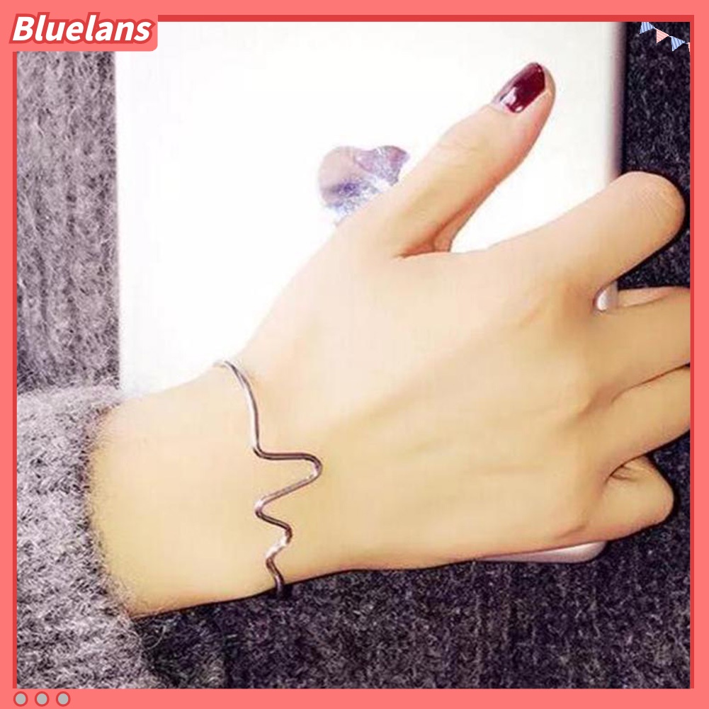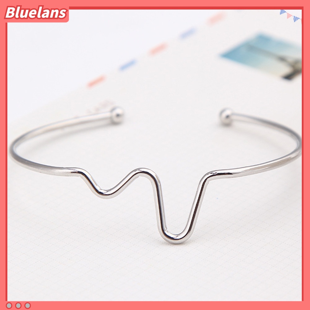 Detail [BLS] Fashion Wanita Sederhana Jantung Detak Irama Ekg Gelombang Berakhir Terbuka Bangle Gelang Hadiah