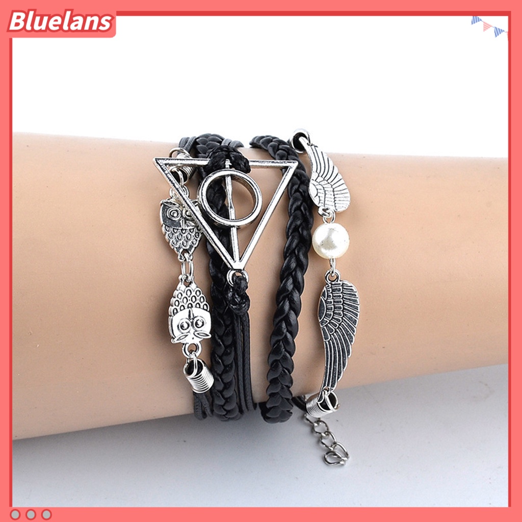 [BLS] Gelang Harry P-otter Deathly Hallows Faux Leather Braided Alloy Multilayer Braided Bangle Perhiasan Untuk Pesta