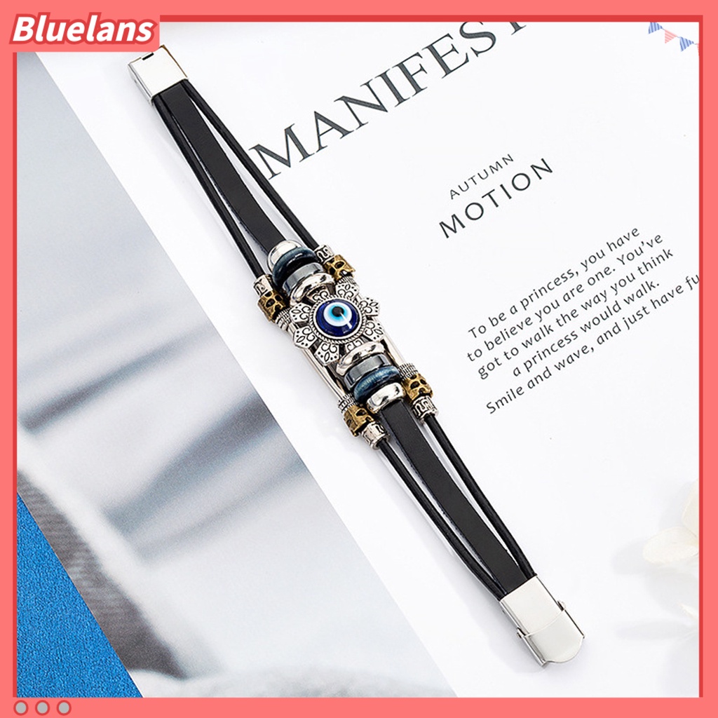 [BLS] Gelang Kulit Imitasi Bohemian Multilayer Beads Vintage Geometris Hias Hadiah Pria Wanita Turki Evil Eye Charm Bracelet Jewelry Untuk Kehidupan Sehari-Hari