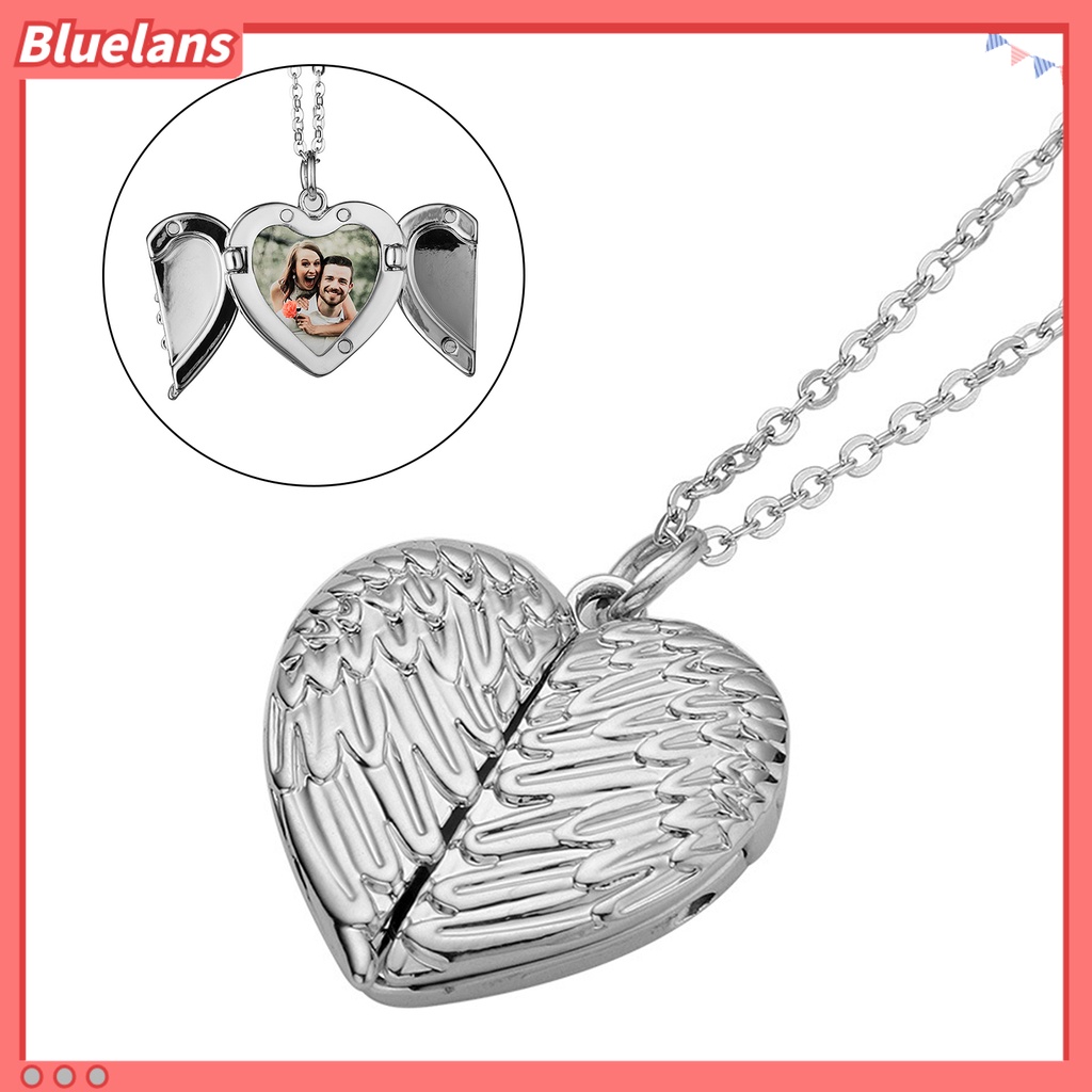 Desain bentuk hati sayap malaikat, liontin rantai elegan, anti karat, tidak pudar, yang memiliki foto kosong di liontin liontin.