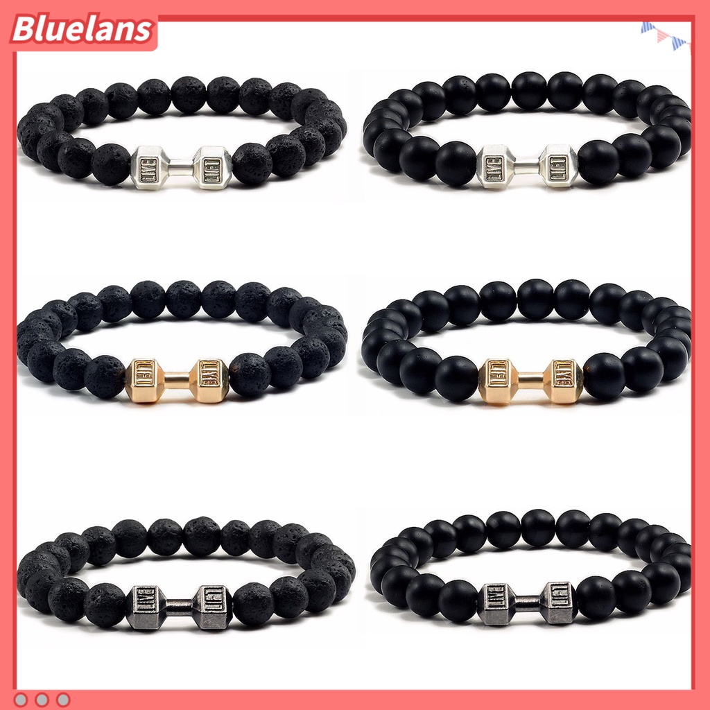 [BLS] Pria Gelang Dumbbell Dekorasi Vintage Matte Finish Handmade Elastis Dekorasi Aksesori Bulat Longgar Manik-Manik Batu Gelang Untuk Pakaian Sehari-Hari
