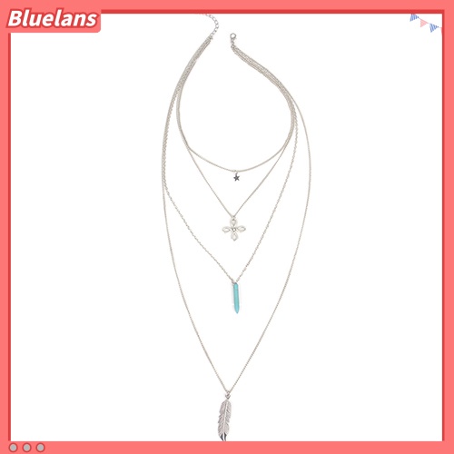 Detail [BLS] Retro Multilayers Cina Simpul Bintang Bulu Pirus Liontin Choker Kalung