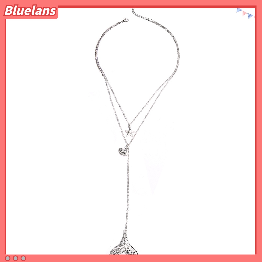 Detail [BLS] Vintage Bintang Laut Shell Ikan Ekor Multi-layer Kalung Wanita Perjamuan Pesta Hadiah