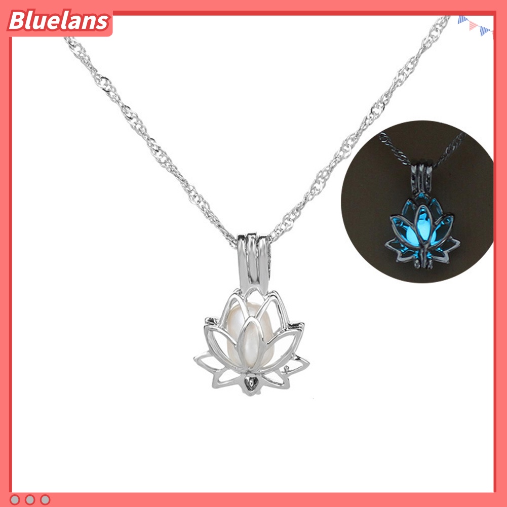 Liontin teratai berongga dengan mutiara imitasi bercahaya bertatahkan, unik dan menarik.