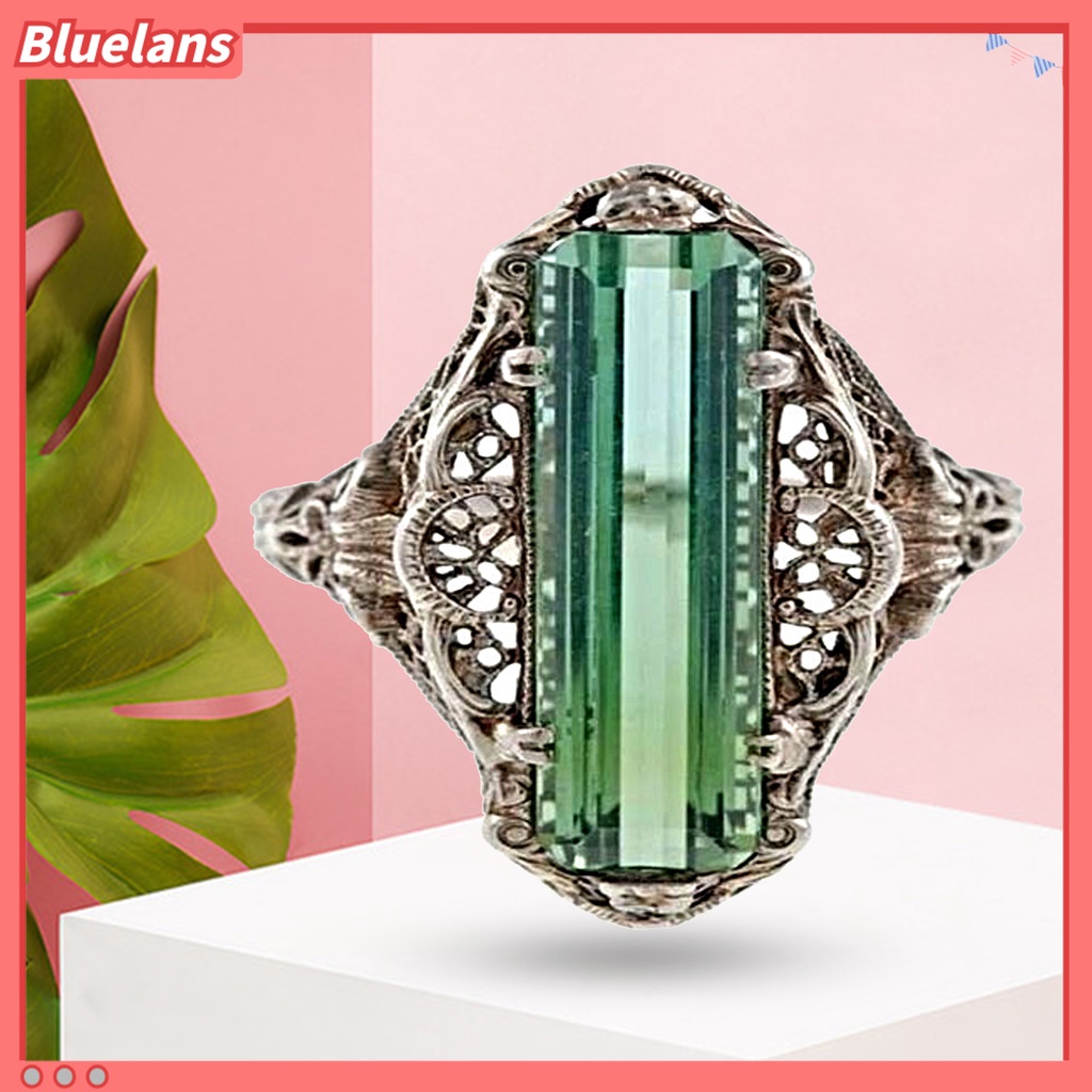 [BLS] Wanita Cincin Berongga Keluar Hijau Cubic Zirconia Perhiasan Vintage Jari Cincin Untuk Pesta Pernikahan Perjamuan Ulang Tahun