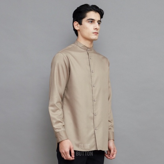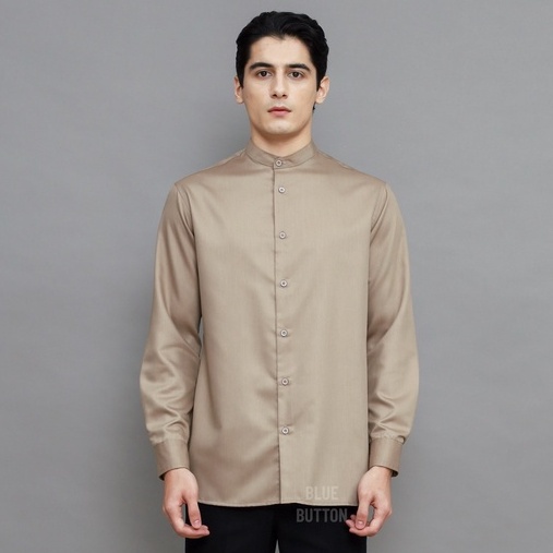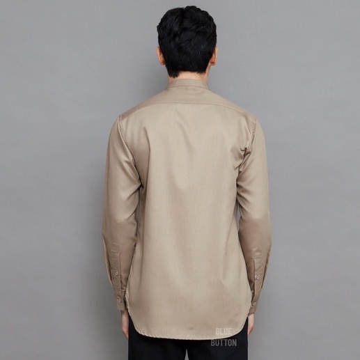Detail BlueButton Kemeja Koko Polos Lengan Panjang Kerah Shanghai Pria - Brown
