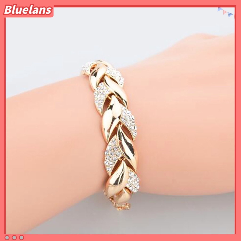 Detail Bluelans Adjustable Golden Leaves Rhinestone Bracelets Elegant Leaf Bangle for Women