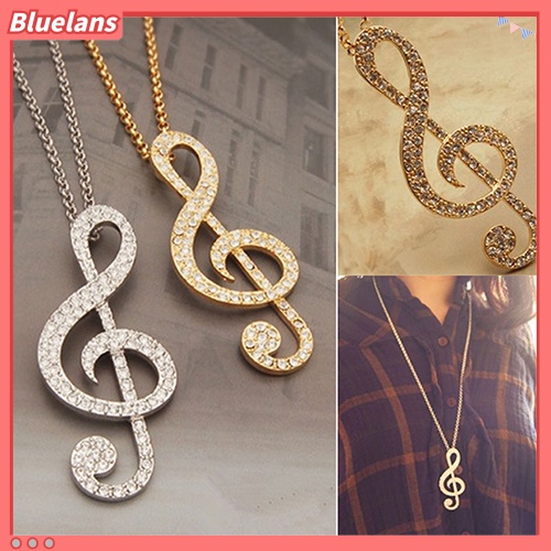 Detail Bluelans Fashion Women Fully Rhinestone Music Note Pendant Long Chain Sweater Necklace