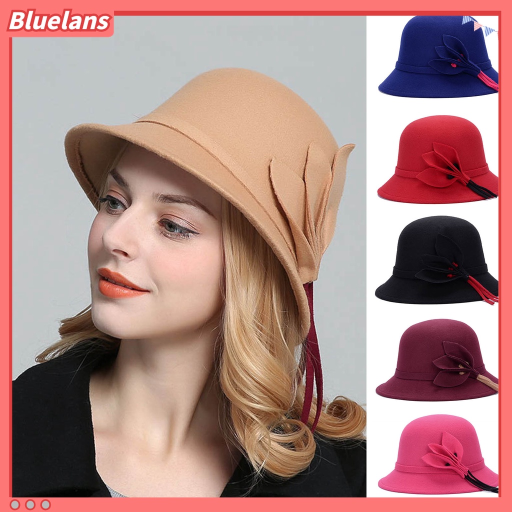 Detail Bluelans Topi Bowler Wanita Bahan Wol Imitasi Gaya Inggris Vintage Untuk Musim Gugur