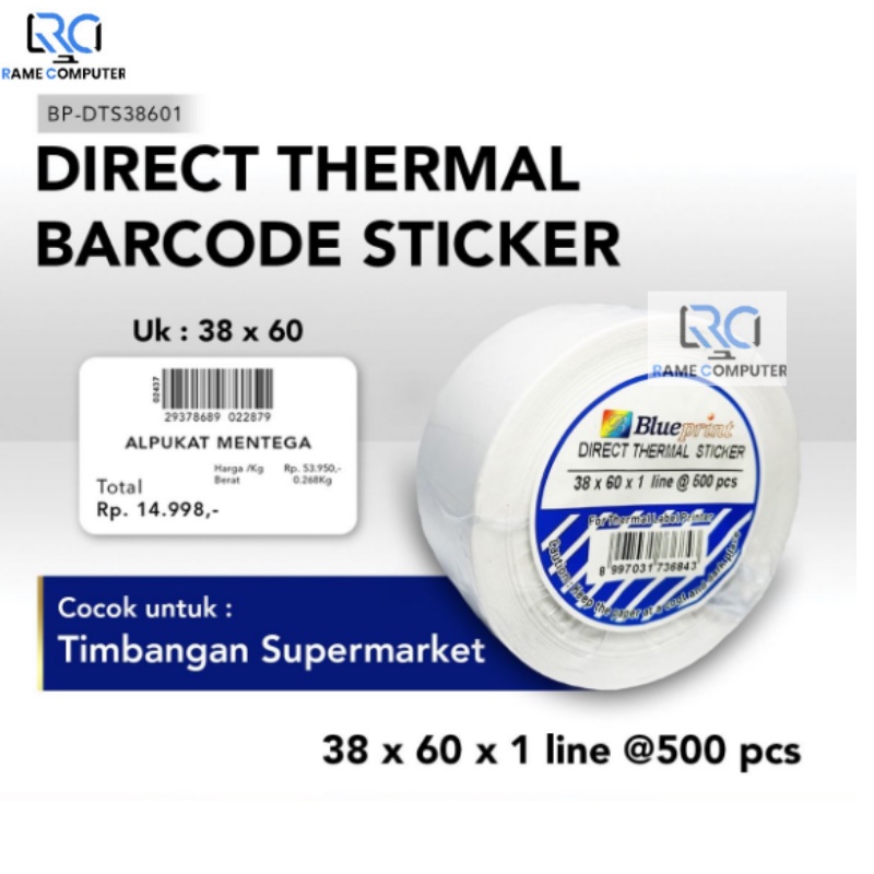 Detail Blueprint Direct Thermal Sticker 38x60 x1 line Isi 500 stiker / label cocok untuk timbangan supermarket