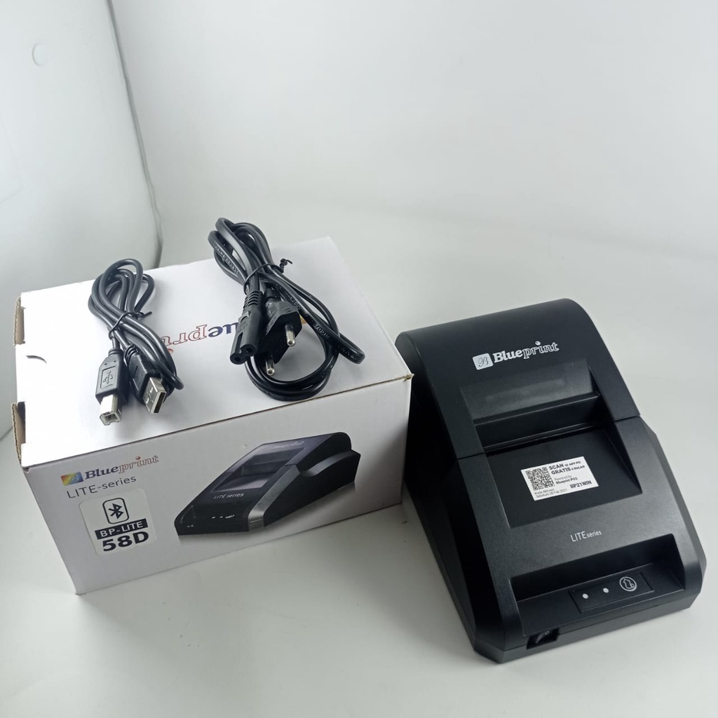 PRINTER KASIR/PPOB THERMAL 58MM BLUEPRINT.. Adapun Spesifikasinya : - Model : BP-LITE58X - Koneksi : USB - Dimensi Produk : 176x125x95 mm - Auto Cutter : No - Print Speed : 90mm/s - Daya Tahan Cetak: 50KM - Lebar Cetakan : Max 48 mm ( 384 dots/lines) - Lebar Kertas : 57,5 +/- 0,5 mm - Kertas Thermal : Maks 48 mm - Power : DC 12V/3A - Power Adapter : Input : AC100 – 240V, 50 – 60 Hz - Mode Barcode : UPC-A/UPC-E/JAN13(EAN13)/JAN8(EAN8)/CODE39/ ITF/CODABAR/CODE93/CODE128/QRCODE/PDF417 - Compatible : Windows 7, 8 dan 10 - Warna : HITAM