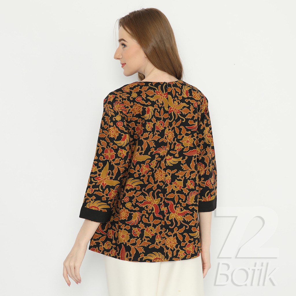 Detail BLUS BATIK PREMIUM KATUN BLOUSE WANITA MOTIF KUPU WARNA KUNING MERAH HITAM 728277 CAP 72