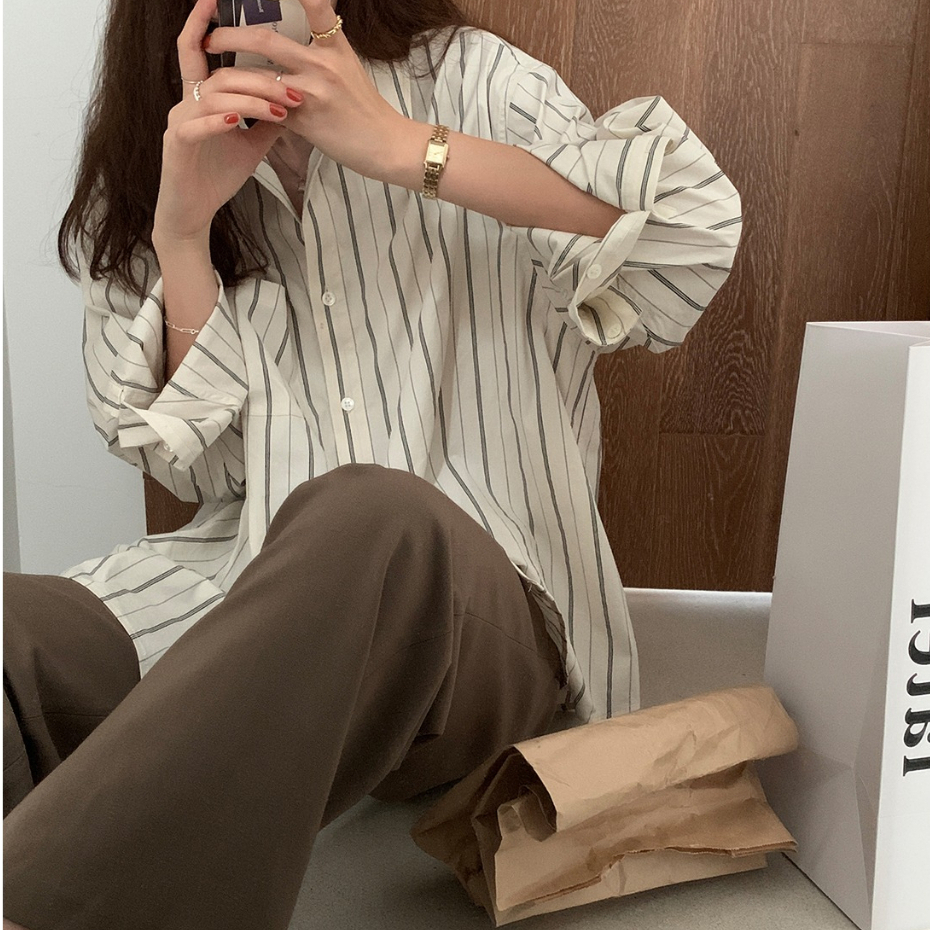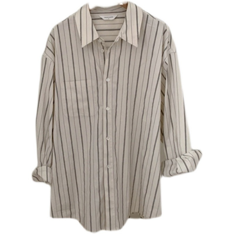 Detail Blus Lengan Panjang Garis Garis Wanita Longgar Atasan Wanita(Tidak cocok untuk tubuh gemuk)