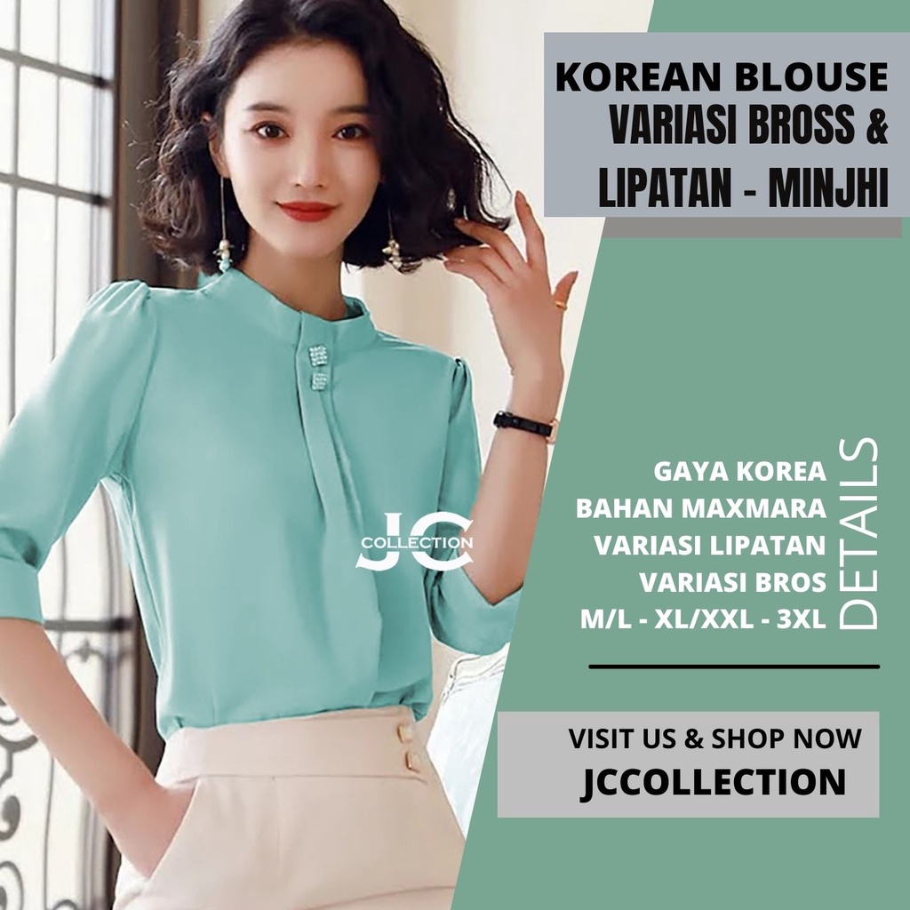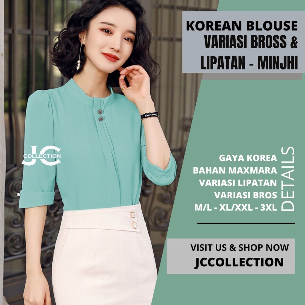 Detail Blus lengan Pendek Wanita Gaya Korea Model Terbaru Minjhi SS JCCollections