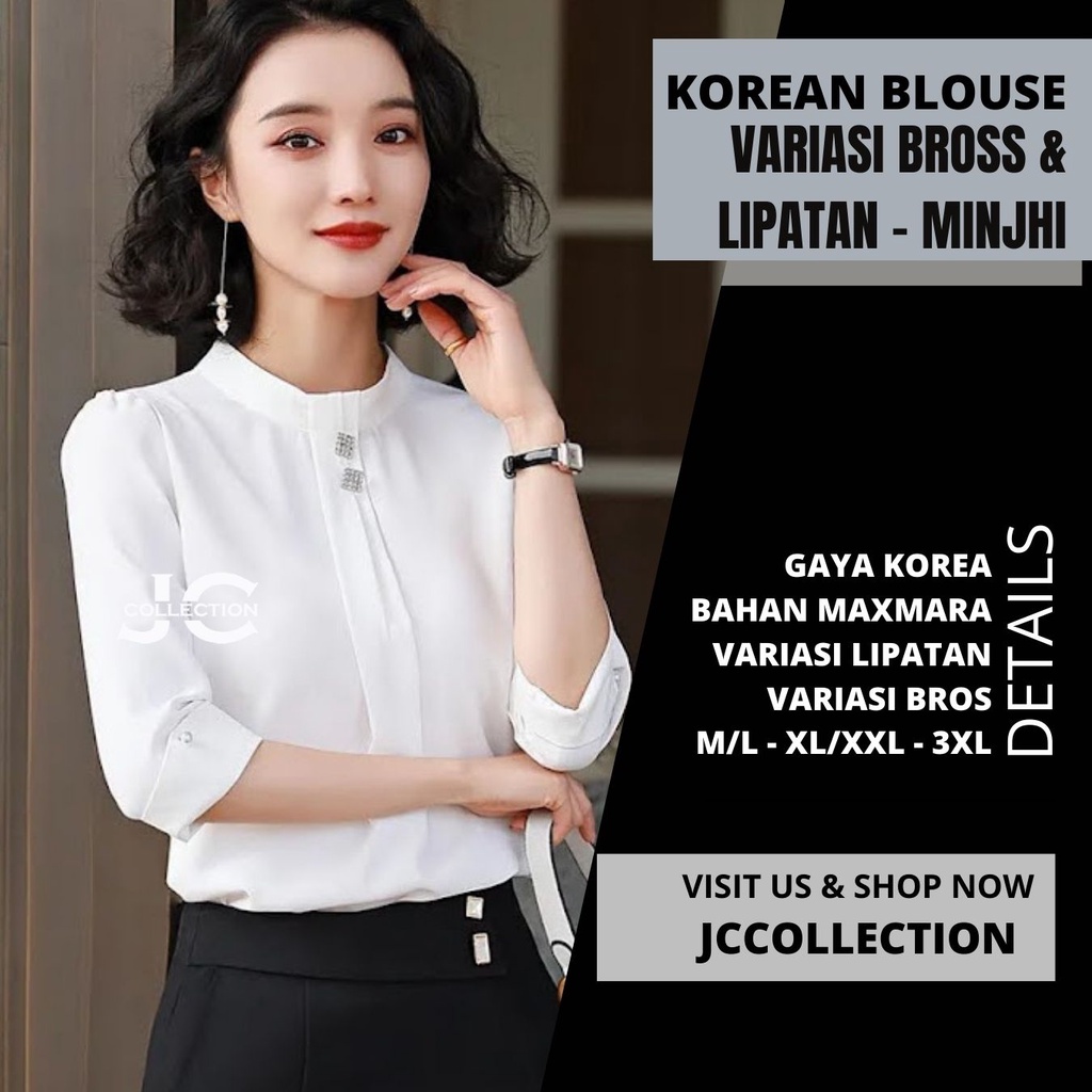 blouse gaya Korea model terbaru terbuat dari bahan maxmara premium berkualitas, nyaman di pakai. Model simpel dan elegan Dengan variasi Lipatan di bagian tengah badan,dan bross warna silver di leher, cocok untuk di pakai dalam berbagai acara.