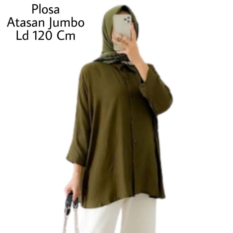 Detail Blus Plosa Jumbo Ld 120 cm Lengan Panjang 3/4 Kerah Kemeja Bahan Moscrepe . Atasan Baju Wanita Oversize Terbaru 2023 Kekinian Blouse Dewasa Jumbo Viral