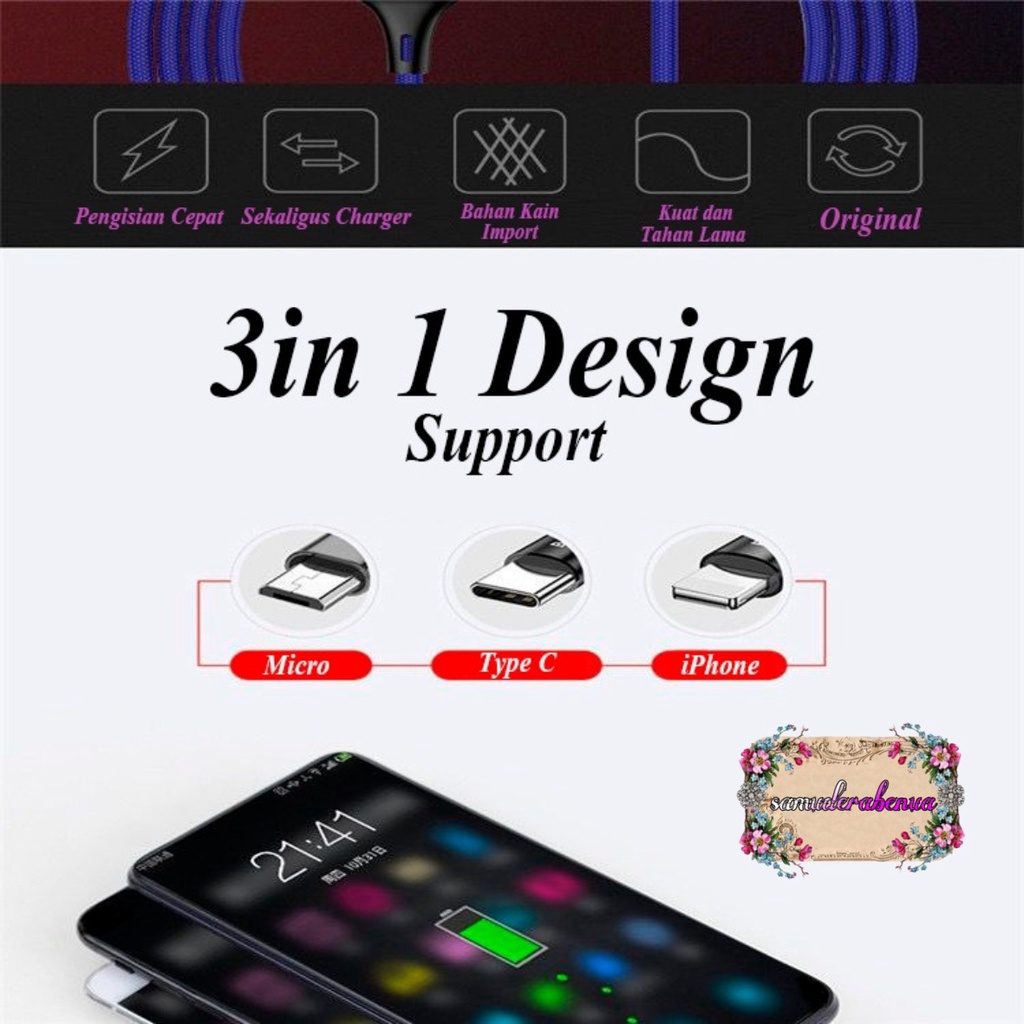 Detail BM021 QC33 1.2M DIINAMI Kabel cable data USB 3in1 Micro ligthing tipe c 2.4A original fast Charging SB2850