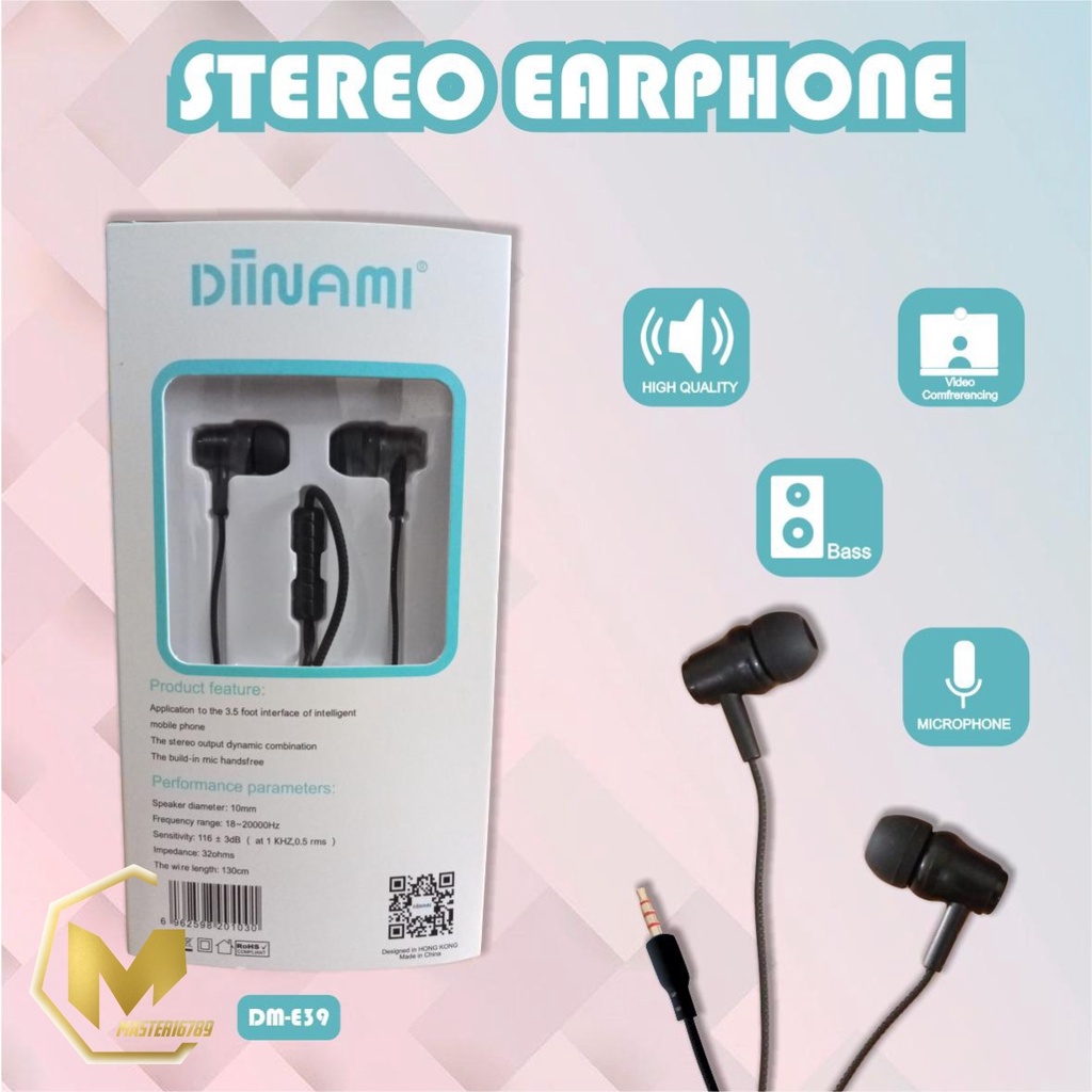 Detail BM031 Headset DIINAMI E39 stereo Earphone Bass Android iPhone Original With MIC - Garansi 1 Tahun MA1833