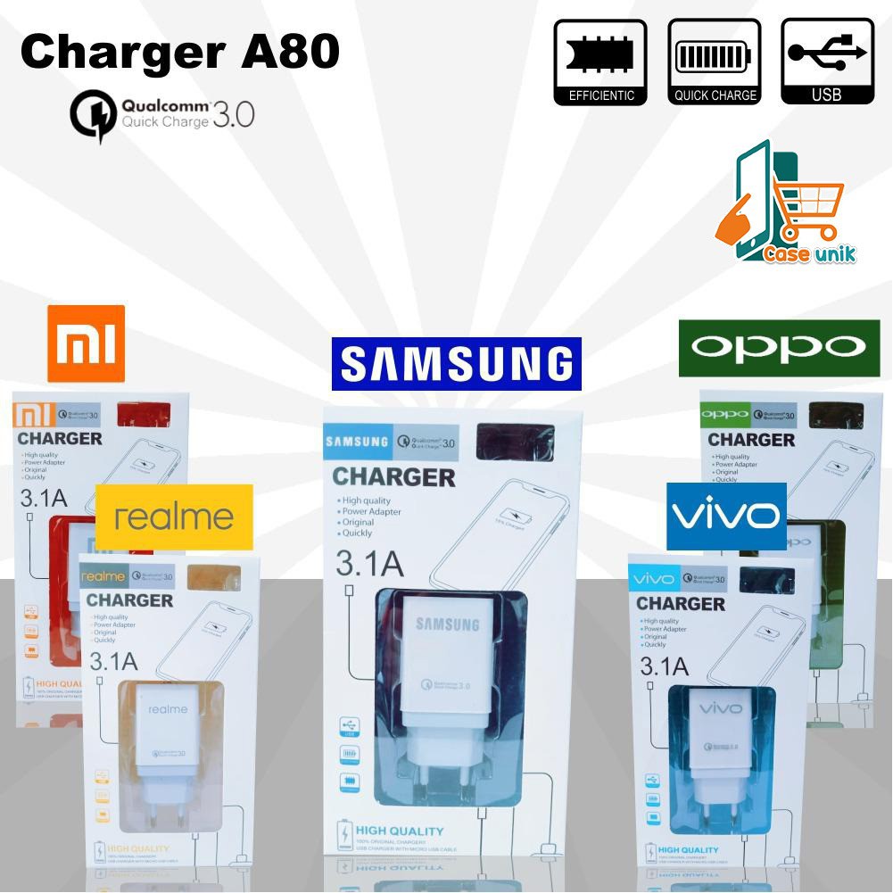 CS2672 CHARGER SAMSUNG A80 3.1A Real amper y bosku QUALCOMM QUICK PENGISIAN DAYA CEPAT keluar Charger Branded SAMSUNG Model A80 Single USB 3.1A Qualcomm Quick Charger 3.0, Included Micro USB, Kompatibel untuk semua smartphone samsung dengan interface micro USB/V8. Model QC3.0-DI Input 100-240V 50/60Hz 0.75A Output 5V=3.5A or 9v=2A OR 12V=1.5A