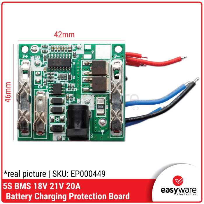 Spesifications : - Charge Voltage:19/21V - Single Cell Charge Voltage:3.8/4.25V - Continuous Discharge Current:8-20A - Overcharge Single Cell Detection Voltage:3.85-4.25V - Overcharge Protection Delay:1S - Overcharge Single Cell Recovery Voltage:3.75-4.13V - Overcharge Protection Release Delay:1mS - Over-discharge Single Cell Detection Voltage:2-2.8V - Over-discharge Protection Delay:1S - Over-discharge Single Cell Recovery Voltage:2.5-3.0V - Over-discharge Protection Release Delay:100±20mS - Over-current Detection Voltage:0.1-0.4V - Over-current Detection Current:30±5A - Over-current Detection Delay:1S - Over-current Protection Recovery State:Auto - Short Circuit Protection:Support - Short Circuit Detection Delay:250uS - Short Circuit Release Delay:1S - Short Circuit Detection Voltage:0.8V - Short Circuit Protection Recovery State:Auto after Disconnect Load - Protection Temperature:70±5℃ - Recovery Temperature:55±5℃