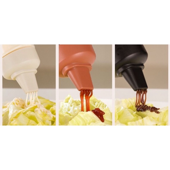 -Keunggulan Produk Kami : 1. Dapat digunakan untuk beraneka macam saos. 2. Terdapat sticker untuk menuliskan nama jenis produk. 3. Botol sangat fleksibel, mudah diperas. 4. Saos didalam mudah dikeluarkan dan mudah dikontrol, mencegah terjadinya pemborosan dalam mengeluarkan saos. 5. Praktis, muda digunakan. Terdapat tutupan transparan, sehingga melindungi mulut botol dari debuan. 6. Body botol terdapat garis ukuran. Dengan total 350ml, seluruh body botol terbuat dari bahan PE, mudah dibersihkan.