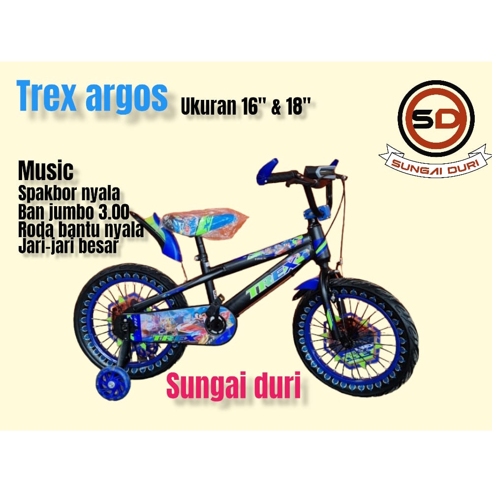 Detail bmx trex argos 16 & 18 inch sepeda anak cowok music dan lampu