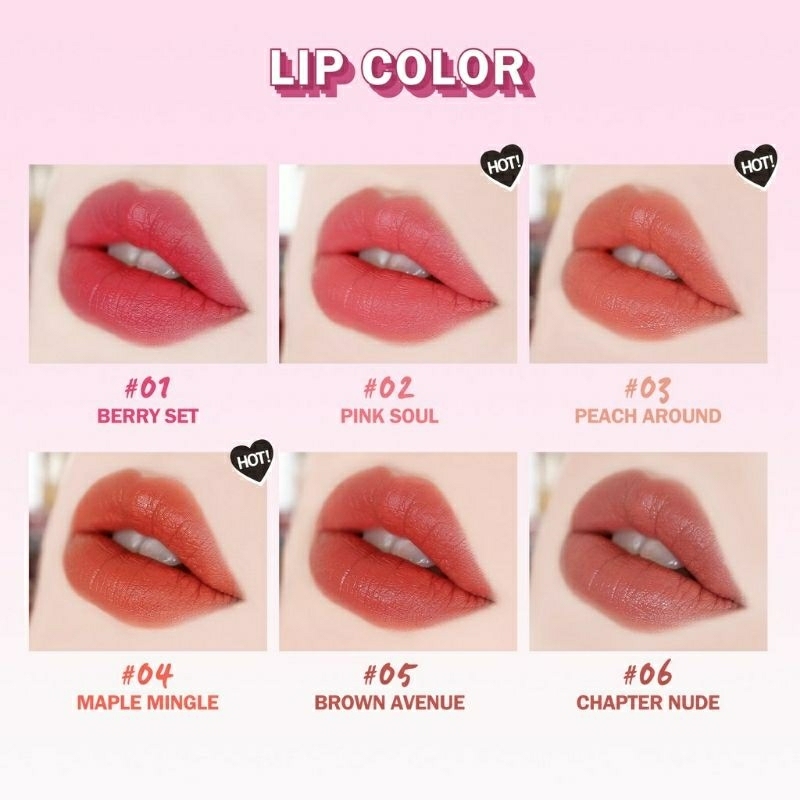 Lip cream beraroma buah beri dengan hasil akhir silky-matte untuk bibir yang tampak penuh dan lembap.