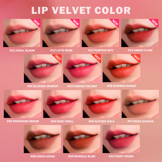 Lip velvet bertekstur mousse dengan aroma buah ceri menyegarkan yang mengandung Macadamia Organic Oil, Vitamin E, dan Hyaluronic Acid untuk bibir yang tetap kenyal dan sehat.