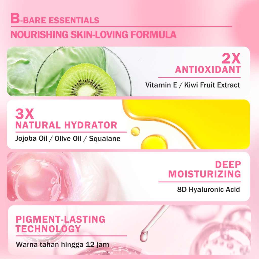 Bare Essentials: 2X Antioxidant, 3X Natural Hydrator, 8D Hyaluronic, and Pigment-Lasting Technology for a gorgeous nourishing stain for lips and cheek.