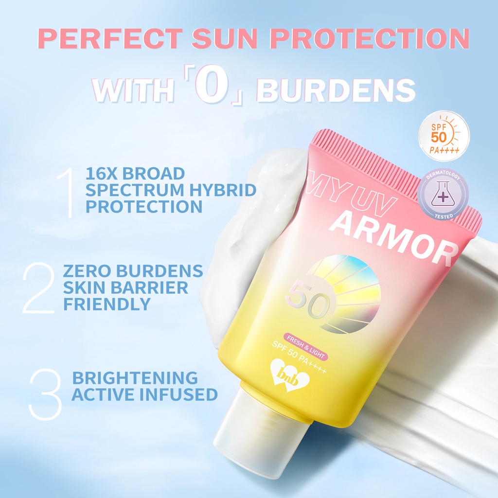 Benefit: 1. 16X Broad Spectrum Hybrid Protection 2. Zero Burdens, Skin Barrier Friendly 3. Brightening Active Infused