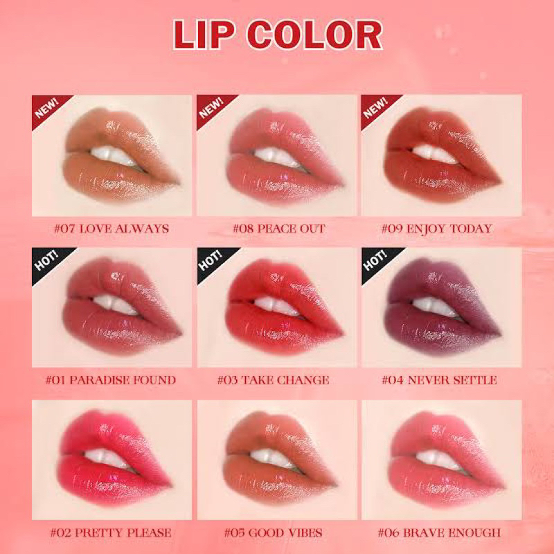 Lip tint beraroma buah persik berteksur gel ringan yang melapisi bibir dengan 6 kandungan kebaikan alami untuk tampilan bibir yang segar dan lembap.