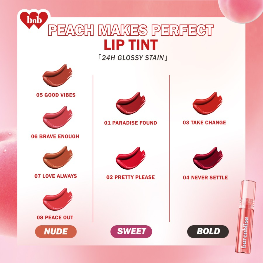 Detail BNB barenbliss Peach Makes Perfect Lip Tint - 12H Stain Up - Lip Tint Korea glassy Glow Bare n Bliss / Lip velvet / Cream / Lip Matte