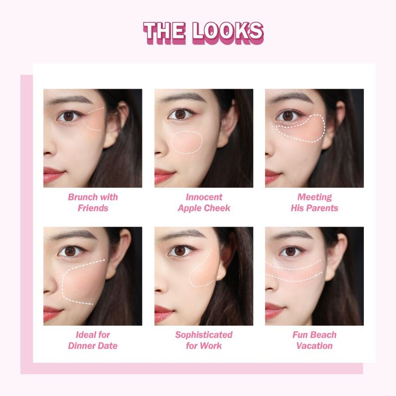 How to use: Aplikasikan menyamping dari pipi bagian dalam hingga ke tulang pipi menggunakan kuas favoritmu. Lakukan berulang untuk warna yang lebih intens.