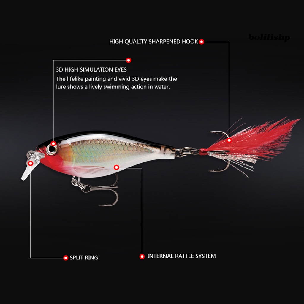 Detail Bo-12.3-13g/8.5-9cm Umpan Pancing 3D Simulasi Fisheye Tajam Kait Menggoda Air Tawar Treble Hook Lure Umpan Memancing Luar Ruangan