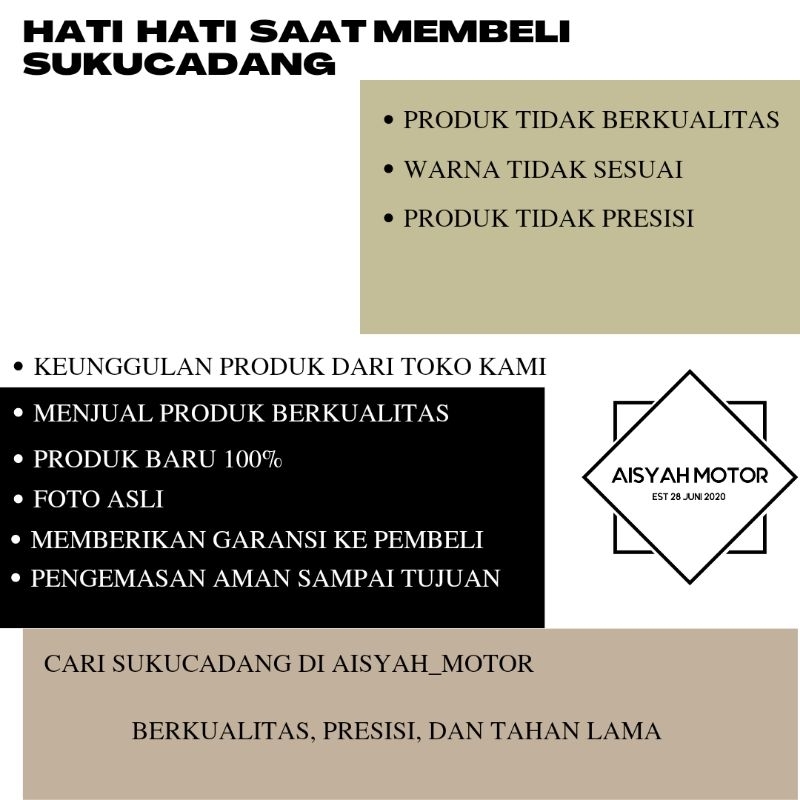 keunggulan 1. harga barang di bawah harga original sehingga tidak menguras biaya untuk perbaikan motor anda 2. bahan abs tidak mudah pecah dan cat tidak mudah pudar 3. part non ori mudah di dapat di toko terdekat di kota anda/di toko online 4. barang sangat presisi