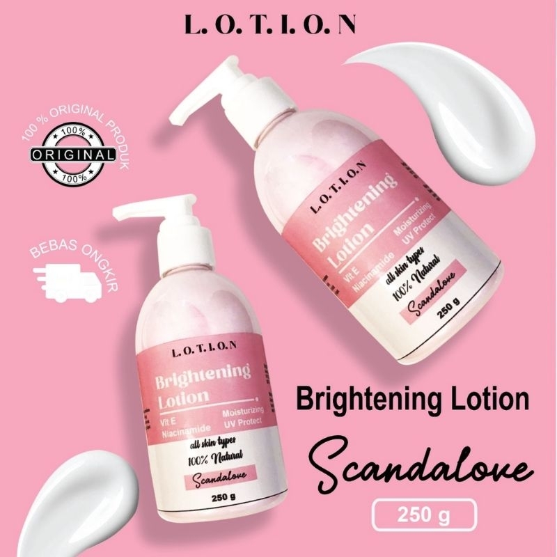 *Lotion Scandalove 250 ml - Brightening & Mouisturizing Body Lotion adalah body lotion yang 100% natural terbuat dari bahan-bahan yang cocok untuk digunakan ke semua jenis kulit (All Skin Types).