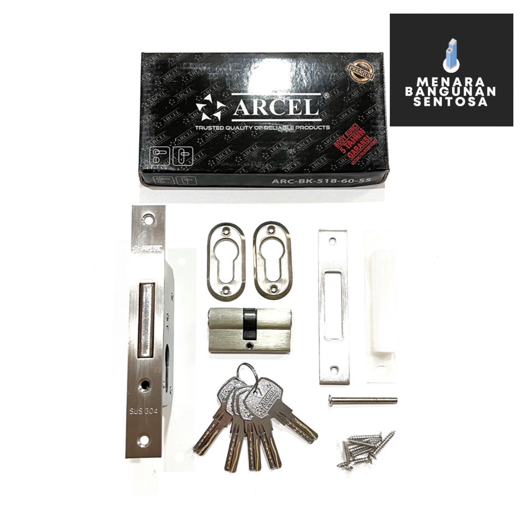 Body Pintu Dorong Merek: Arcel Bahan: Stainless Steel Anak kunci komputer 5 (Anak kunci laser sehingga tidak mudah dibobol) Kunci silinder babet jantung kuningan