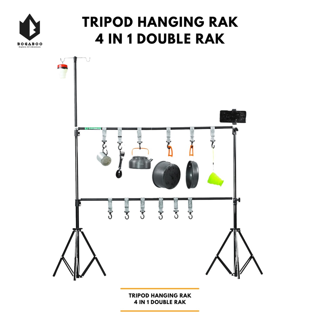 Detail BOGABOO Tripod Hanging double Rack - Gantungan Trypod ALat Camping - Rak Cantolan Alat Masak - tripod handphone - tripod lampu