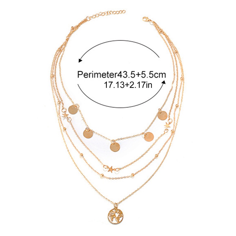 Aksesoris Fashion > Kalung > Rantai & Link > Bohemian Map Bulat Manik Liontin Kalung Untuk Wanita Fashion Sequin Bintang Multilayer Kalung Perempuan Pesta Perhiasan
