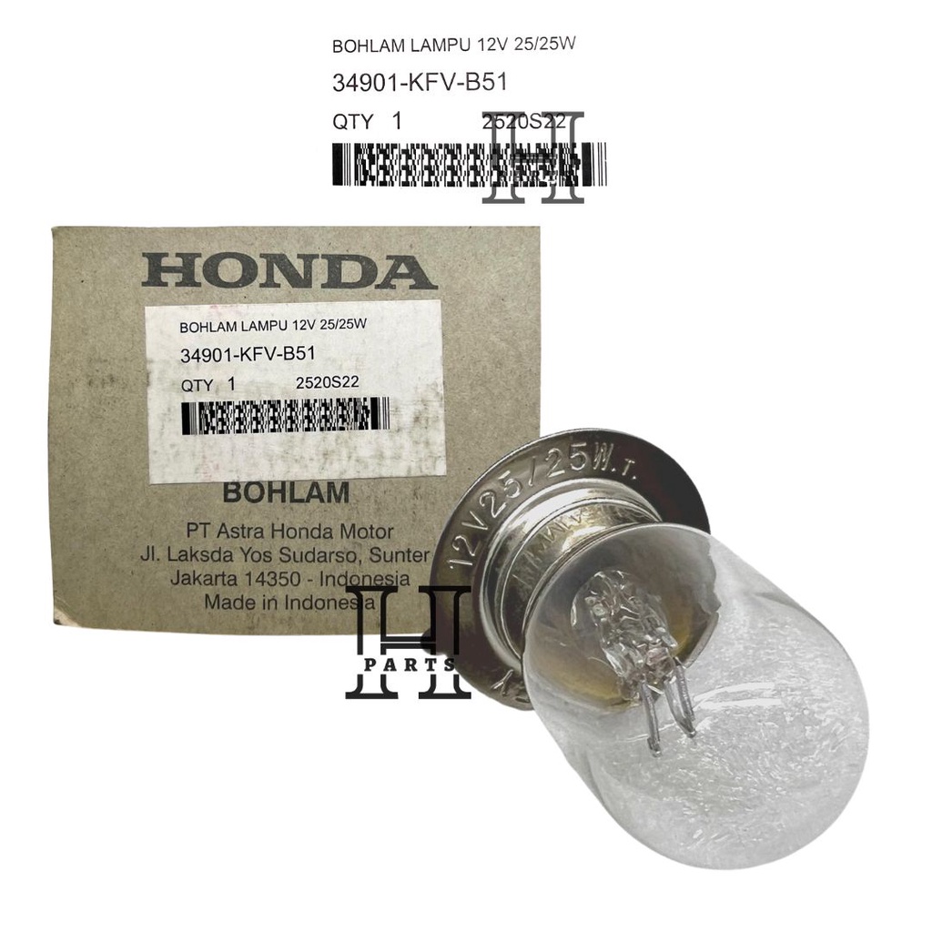 BOHLAM LAMPU DEPAN BULB HEADLIGHT 12V 25/25W GRAND LEGENDA PRIMA VARIO 110 KARBU SUPRA X BLADE VARIO 125 FI OLD 34901-KFV-B51 ASLI ORIGINAL AHM HGP HONDA