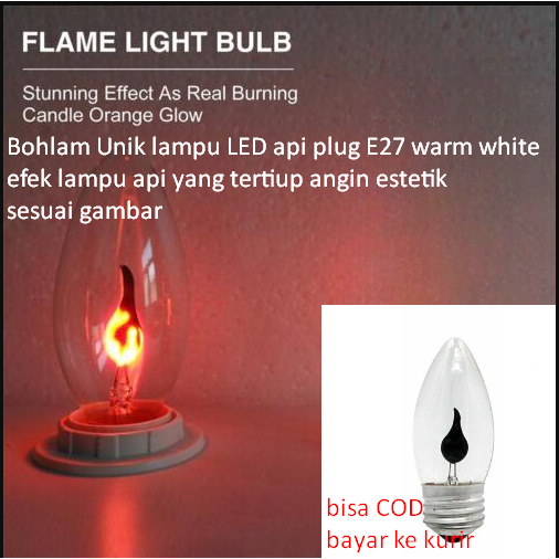 Bohlam Unik lampu LED api plug E27 warm white efek lampu api yang tertiup angin estetik sesuai gambar