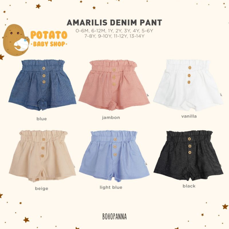 Bohopanna Amarilis Denim Pant 0Month s/d 8Years- Celana Pendek Boho Baby