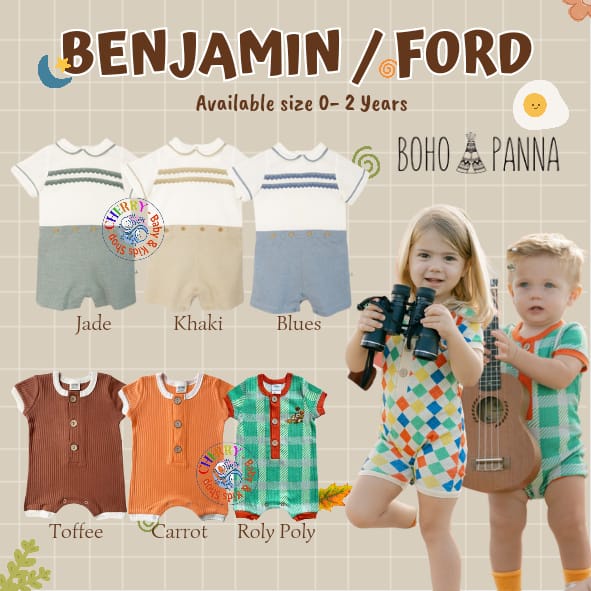 Your browser does not support the video tag.Video perkenalan produk Bohopanna Ford / Benjamin Playsuit 0-2Y Shortsleeves Playsuit / Romper Rib Bayi / Romper Reeb Anak CBKS. Sumber: Shopee.