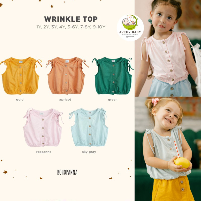 BOHOPANNA WRINKLE TOP / WRINKLE TOP BOHOPANNA TOP/ ATASAN GIRL / BLUS ANAK PEREMPUAN COTTON 100% Termasuk tipe yg CROP TOP ya moms WARNA SSUAI VARIASI SIZE MOHON DIPASTIKAN DICEK BERDASARKAN SIZE CHART (UKURAN LEBAR CENTIMETER) mohon jangan berpatokan pada umur ya moms