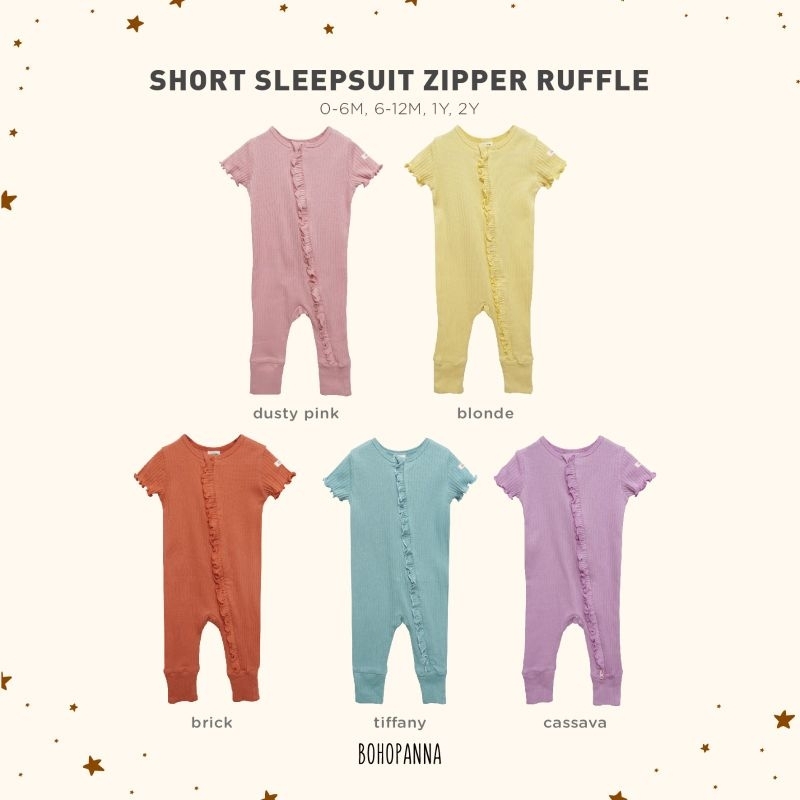 Detail BOHOPANNA - SHORT SLEEPSUIT ZIPPER RUFFLE BOHOPANNA - SLEEPSUIT BAYI - BAJU TIDUR BAYI - SLEEPSUIT ANAK