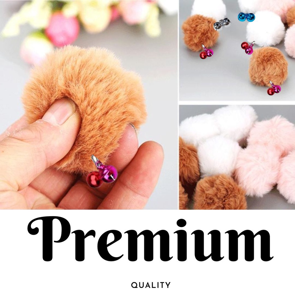 Detail Bola Bulu Lonceng Mainan Kucing Kitten 5 cm Aksesoris Hewan Peliharaan FEFARM