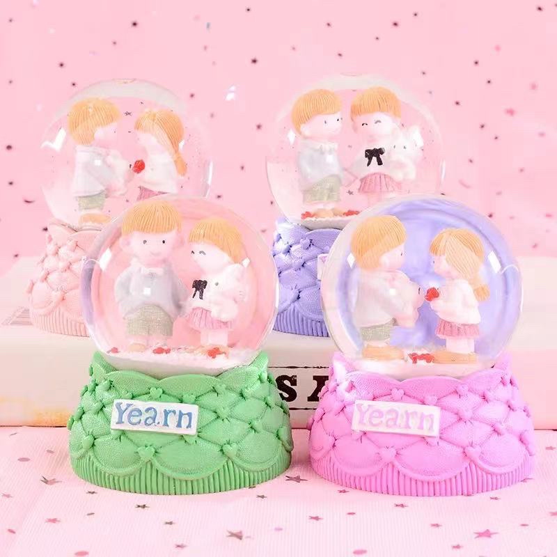 Detail bola kristal salju lampu snowball kado dgn karakter pacaran / sepasang lgi pacaran ❤