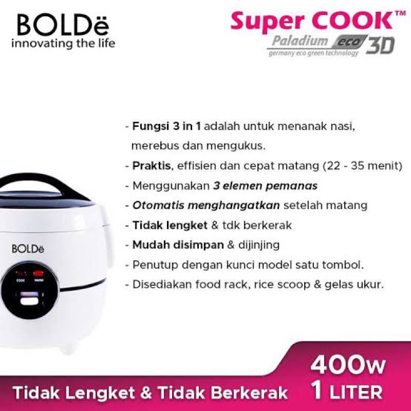 BOLDe Rice Cooker 3D SUPER COOK 1 Liter PALLADIUM - PutihBOLDe Rice Cooker 3D SUPER COOK 1 Liter PALLADIUM - Putih
